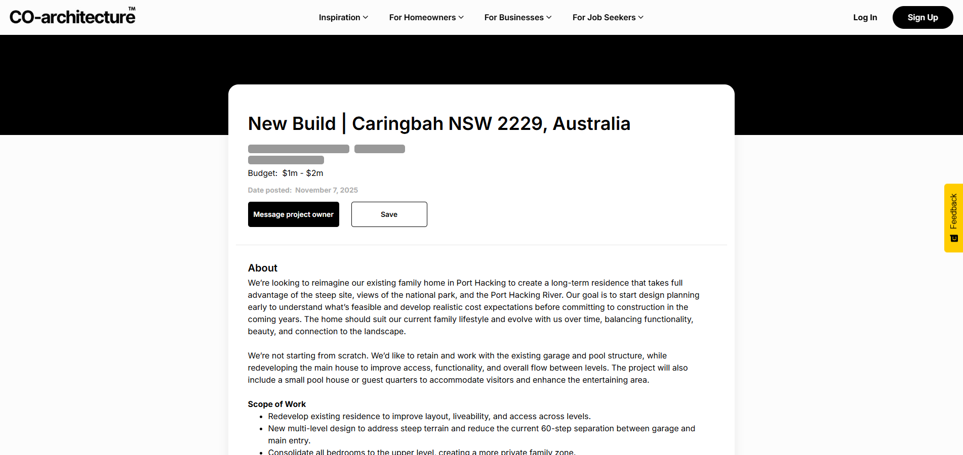This guide is designed to help you get the most out of the CO-architecture Project Portal feature: how it works, how to respond in a way that feels clear and respectful to homeowners, and how small changes to your first contact can significantly improve engagement and your chances of being selected.
