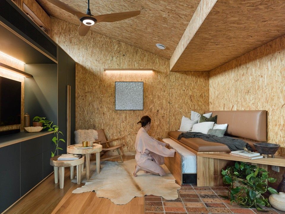 The secondary dwelling provides a much needed separate office space for the clients’ growing company, as well as providing space for guest accommodation and being geared for short-stay accommodation. The works to the existing home improve the thermal comfort of the space and create new entertaining spaces throughout. Between the natural and raw material palette including extensive timber use, endemic rooftop gardens and tree canopy deck, the biophilic connection of the entire site is strengthened with its immediate environment.