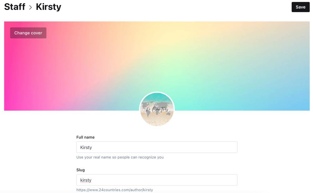 3. Details you can add to your staff profile include; full name, email, location, website, Facebook and Twitter links, a bio. You can even change passwords. Then, simply click 'save' up the top right-hand corner once you're done editing.