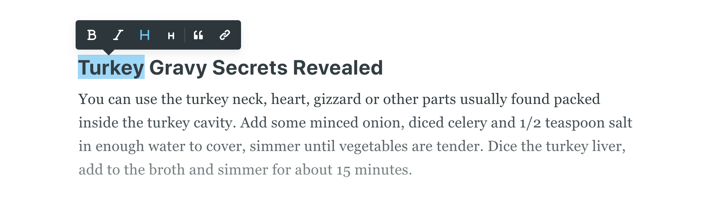 Writing simple content is a breeze - but there are tons of powerful shortcuts, too. For those of you who are familiar with writing blog content, you can write plaintext, activating formatting options using either the mouse or keyboard shortcuts. But you can also write in Markdown, if you prefer, and the editor will convert it as you type - rendering an instant preview.