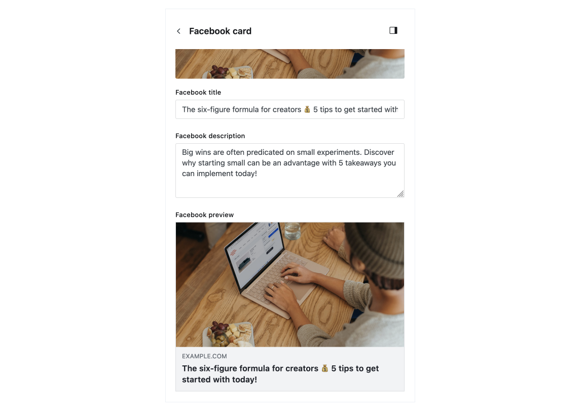 Tip: Facebook caches the Open Graph data for your post when published. To update this for a published post, use the Facebook Sharing Debugger.