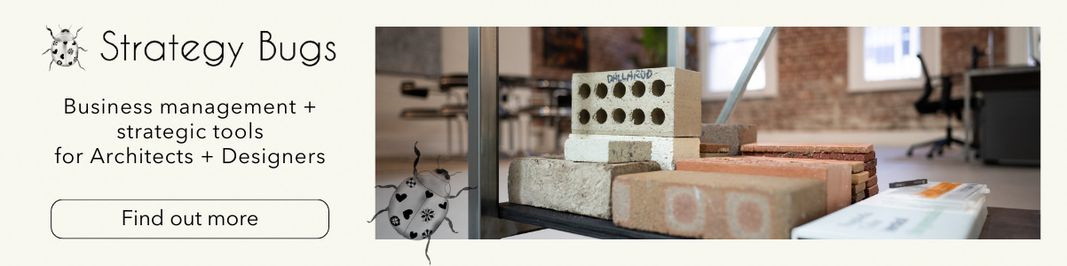 Strategy Bugs is more than a consultancy – it is an excellent opportunity for architects and designers seeking to conquer the intricate world of business management. By delivering customised platforms, visual tools, and personal support, Strategy Bugs bridges the gap between creativity and business acumen. Whether your goals lie in financial growth or operational efficiency, Strategy Bugs will walk alongside you, empowering you to redefine success in your architectural practice. And just like the ladybugs that inspired the name, Strategy Bugs wishes you good luck, great fortune and protection on your journey.