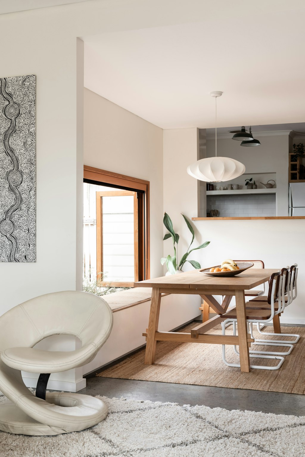 With wonderful access to northern and eastern light, the plan is orientated to create moments of delight and repose. The dining area has a large east-facing cedar frame, bi-fold window, with an integrated banquette seat, that opens on to a pocket of native garden and admits lovely eastern sun in which to enjoy a morning coffee. The rear north-facing living room is a generous space, with ample access to light, and cedar sliding doors framing the beautiful gardens beyond. The two new bedrooms face north to the views of the rear garden.
