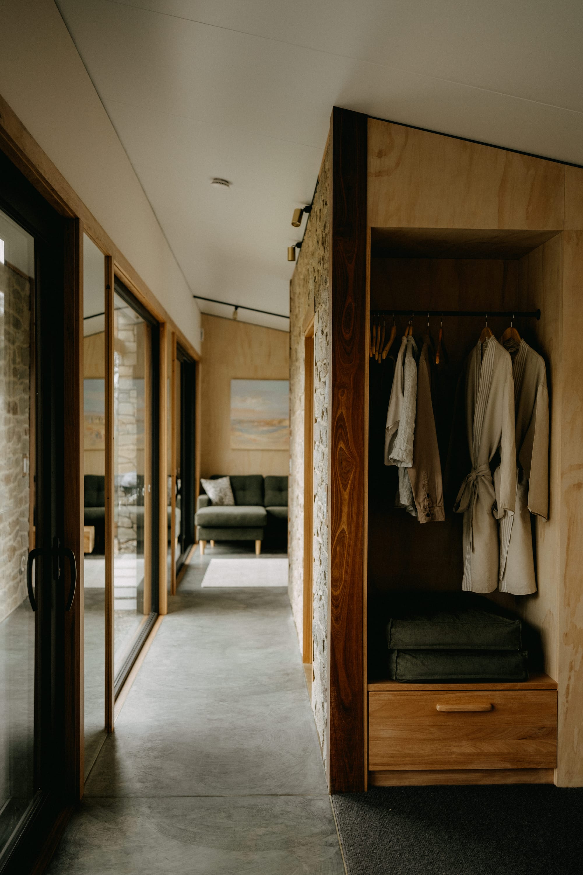 The eco-retreats embody more than the pursuit of relaxation and sustainability, pushing the boundaries of creativity and luxury in a unique backdrop. Crafter's feel humbly luxurious, with polished concrete floors, raw plywood walls, stonework and brass finishes accumulating to add textural elegance to the otherwise robust cabins. Personable beyond words, the retreats feature handcrafted furniture, timber trimmings milled onsite and an impressive display of artwork and crafts from up-and-coming local Australian artists that are available for purchase by guests.