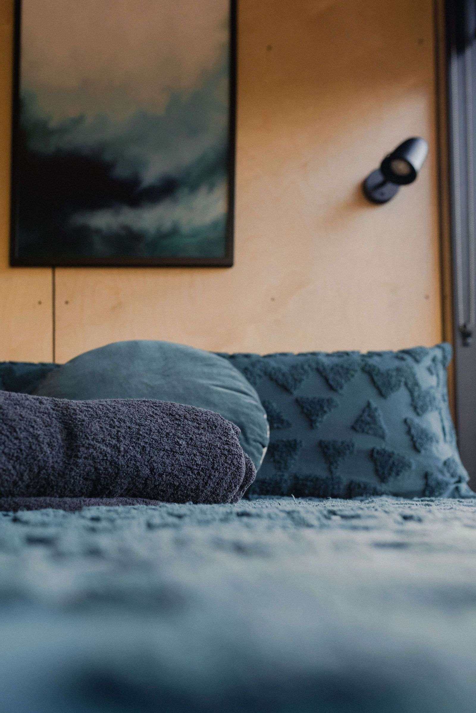 However, the real spectacle awaited us at our destination: a secluded tiny cabin situated amidst an expansive olive grove, beautifully adorned with native flora such as the Nuytsia Floribunda (WA Xmas tree), Pincushion Hakea, Banksia, and Tuart Trees. Upon our arrival, we were welcomed with heart warming attentiveness – a handy trolley cart awaited to gracefully carry our luggage, and umbrellas were at the ready to protect us from the gentle drizzle. As we ventured further, we became immersed in a serene pathway lined with olive trees, guiding us gently towards a much needed haven of revitalisation. Our sanctuary for the weekend was the "Cate" cabin, a tribute to Australian actress Cate Blanchett, embodying everything smart, kind, authentic, and iconic, much like its namesake.
