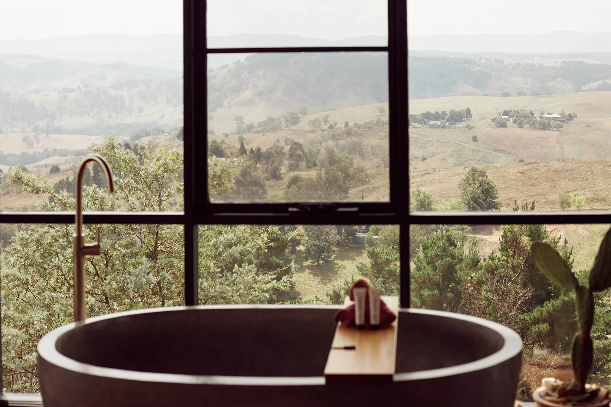 In response to the success of their first project, the conversion of an old machinery shed on site turned luxury farm-stay accommodation, the couple decided to expand their boutique accommodation offering. Over two properties, Logan Brae and a Mt Kanimbla site, four unique stay experiences are spread. All the cottages and cabins are tastefully decorated with a mix of modern and rustic furnishings, creating a warm and inviting atmosphere for guests to take in the landscape they are surrounded by.