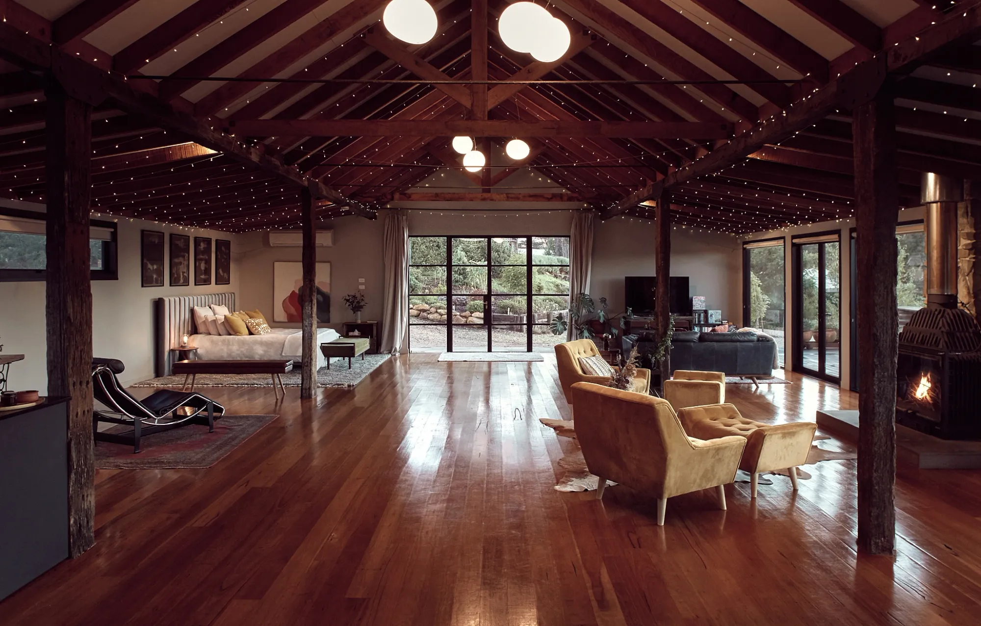 Like the Machinery Shed, every detail has been thought out in the interiors of these cabins to enhance guests stay experience. In the evening, guests can gather around the outdoor fire pit and roast marshmallows under the starry sky. Or, curl up inside with a good book and a glass of wine by the fire, and let the peaceful surroundings lull them into a restful sleep.