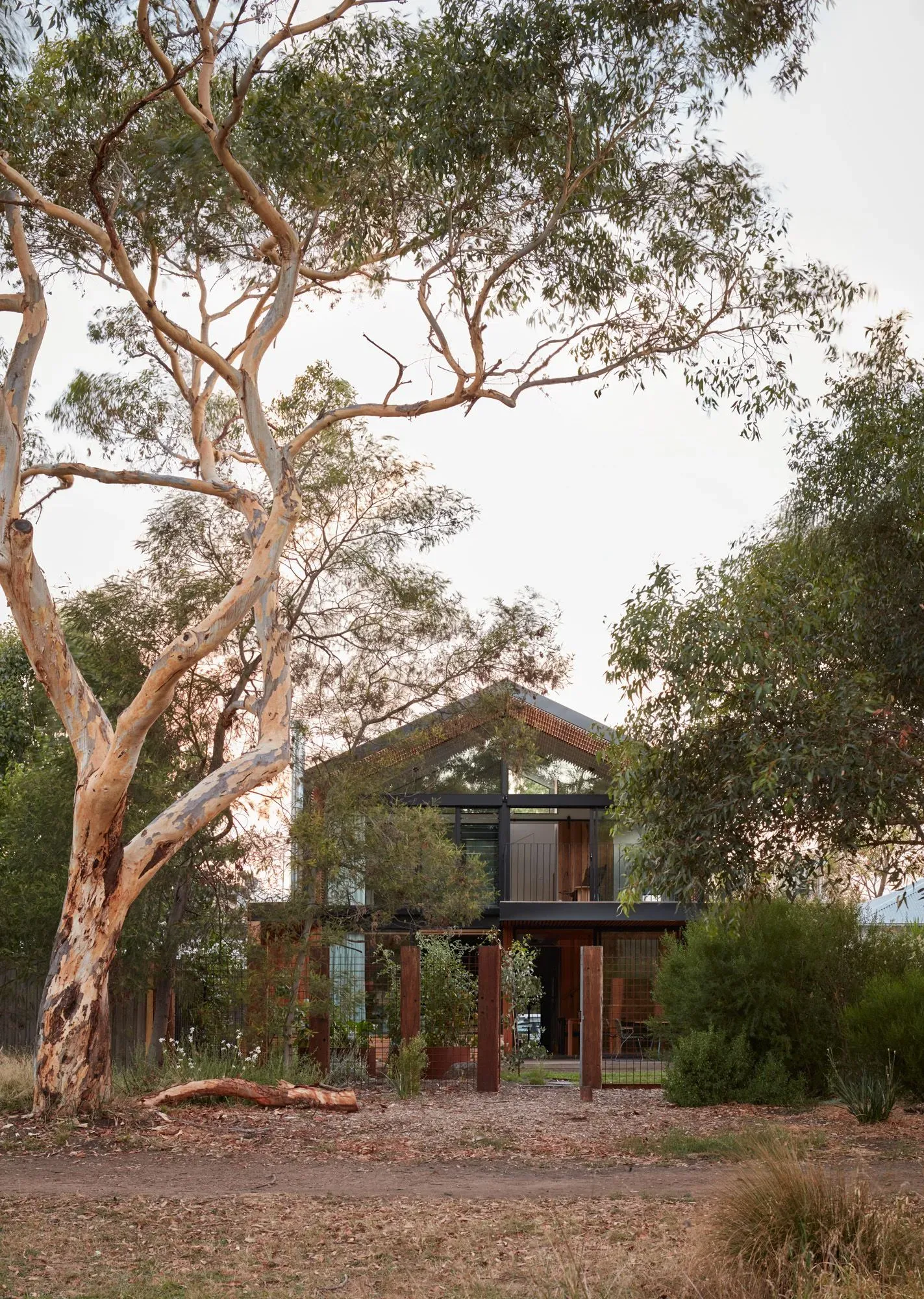 The building connects beautifully with the elements and treats rainwater on-site without downpipes, collecting it into beautiful swales around the perimeter of the building.