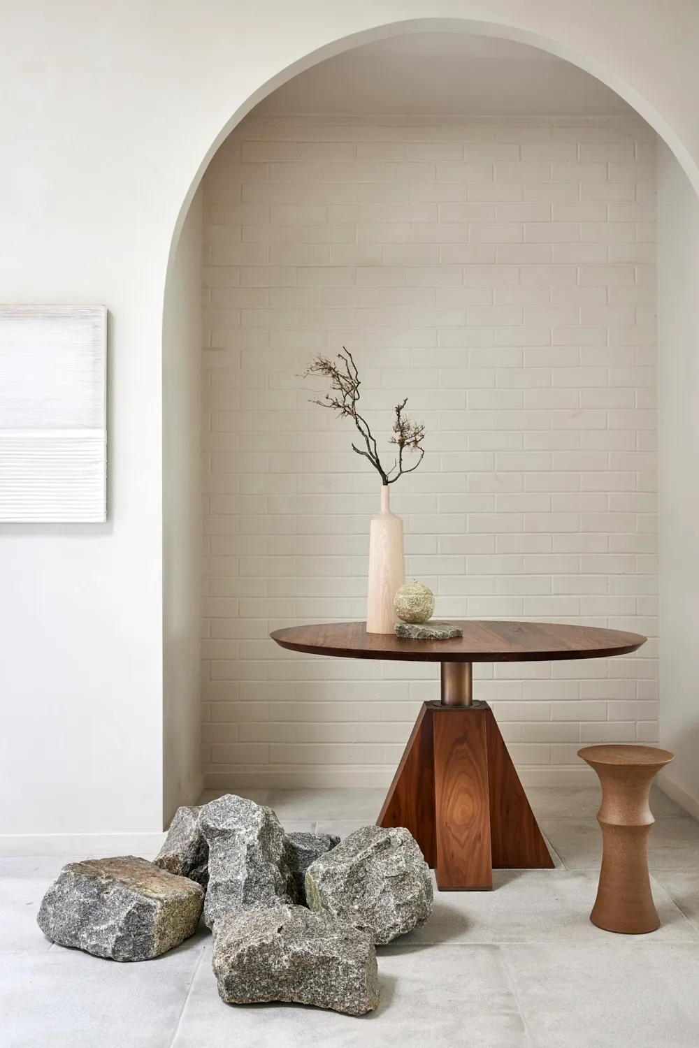 Daniel's furniture collections are inspired by his travels and the Australian landscape. The Alhambra Table is inspired by his travels in Granada and explores sacred geometries found in nature and echoed in the Alhambra palace's monumental architecture. The Booham Chair is a contemporary expression of Charlotte Perri and Pierre Jeanneret's great traditions, inspiring both a primitive and contemporary edge. The Hinterland Stool is a nod to the rich farming history of Byron Bay's Hinterland, a contemporary expression of the region's utilitarian, country aesthetic.