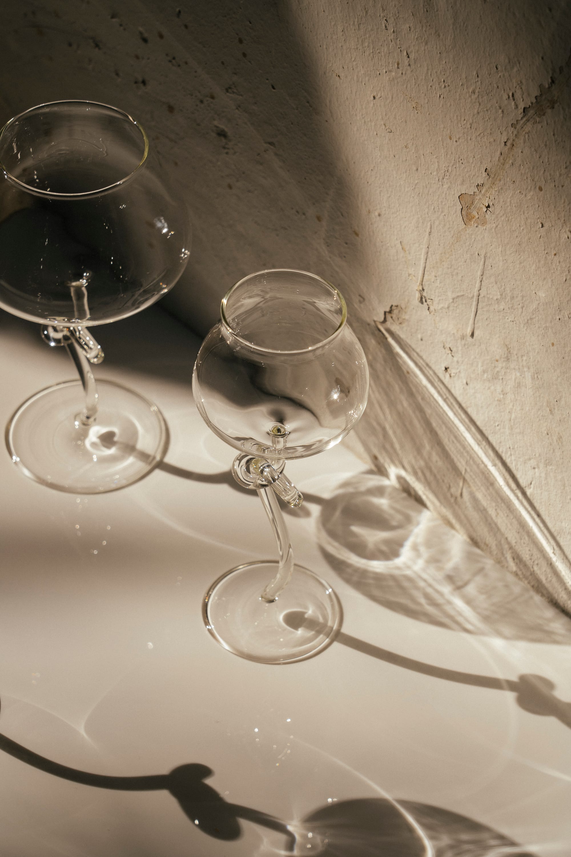New Piece's Spira Vitae Wine Glass evokes elegance and sophistication, reflecting the literal twisted form of the stem whilst hinting at the celebration and vitality that wine symbolises. Crafted from premium high-borosilicate glass, this handmade piece embodies elegance and refinement. The cup’s silhouette is delicately thin and lightweight, offering exceptional clarity and resilience to high temperatures. Each wine glass features a hand-sculpted knot at its center, a signature touch by our master artisans—effortlessly unique and artfully poised.