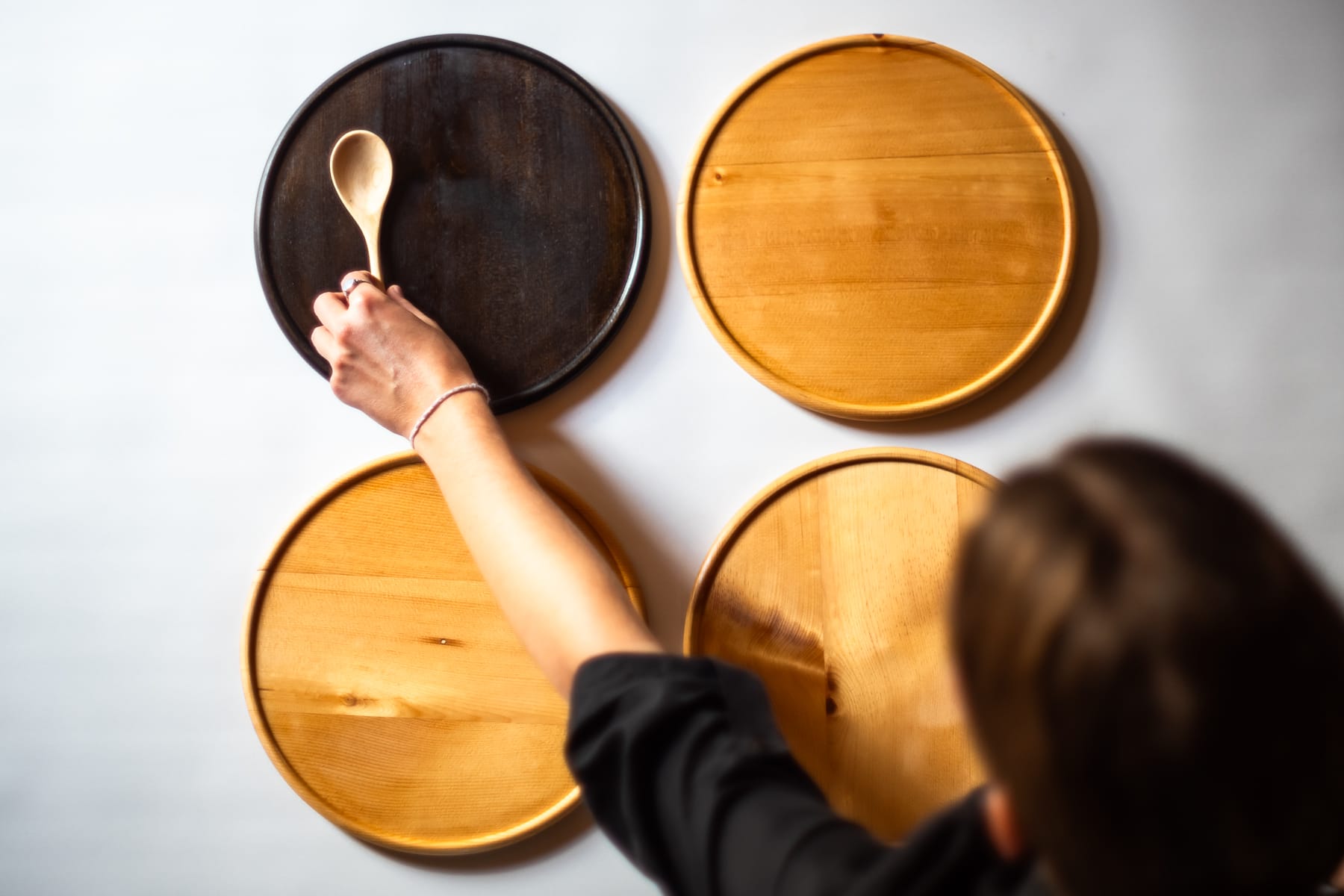 The Sunday Set by Green Studio is a plate and spoon combo with a storyteller's spirit. Loving handcrafted from an old and dearly loved family dining table, the Sunday Set see's the reclaiming of unique timber to create an interesting talking piece for your own home. Each Sunday Set is imbued with a lifetime of stories and unique characteristics- ready to create new memories in this new chapter! The Sunday Set is available in Japan Black or natural timber colour, the set is just as perfect mix and matched.