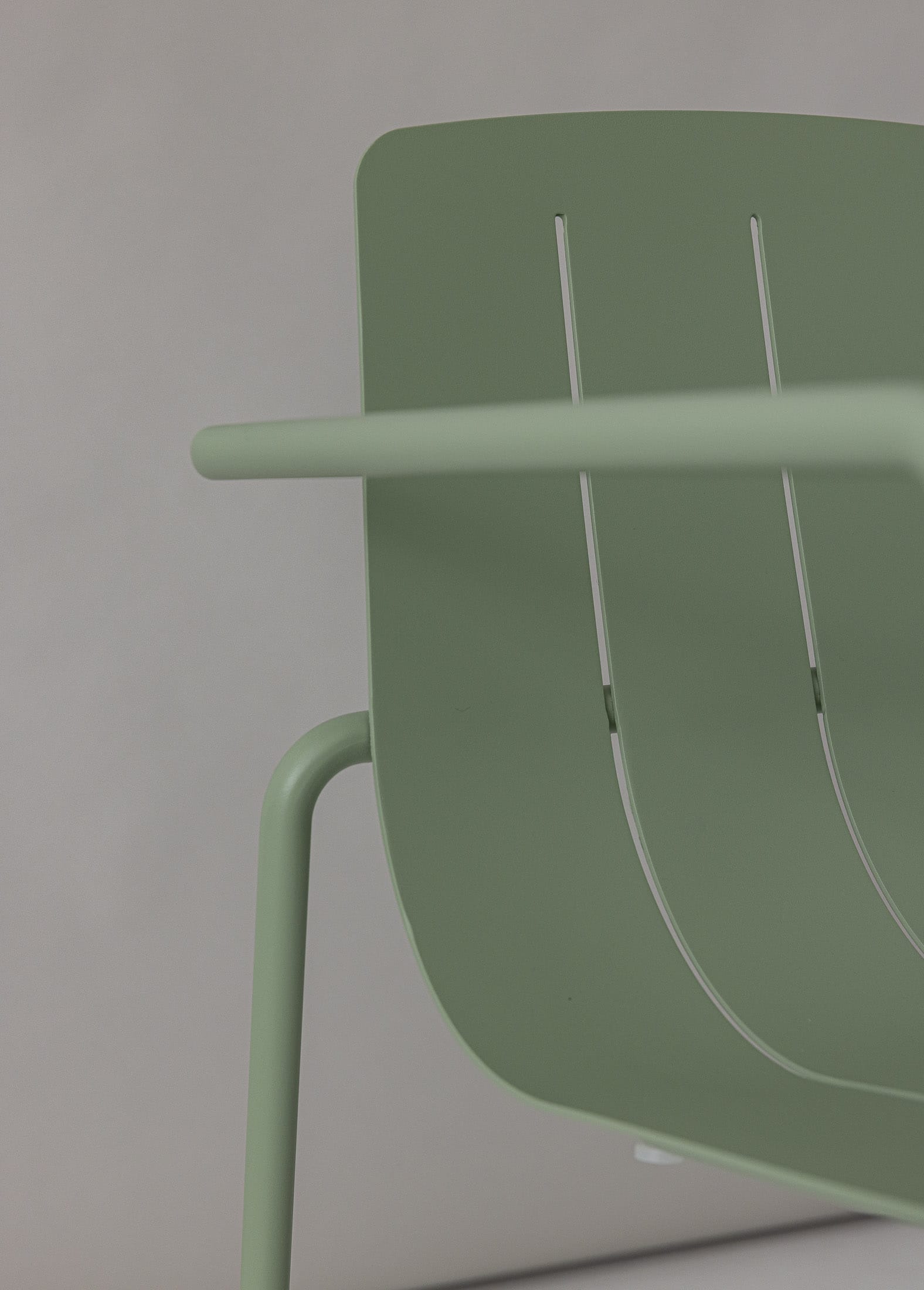 The collection offers a palette that ranges from the sleek minimalism of Charcoal and White to the vibrant hues of Eucalypt and the limited-edition Melon for the Frankie Chair, infusing outdoor spaces with a sense of refined liveliness.