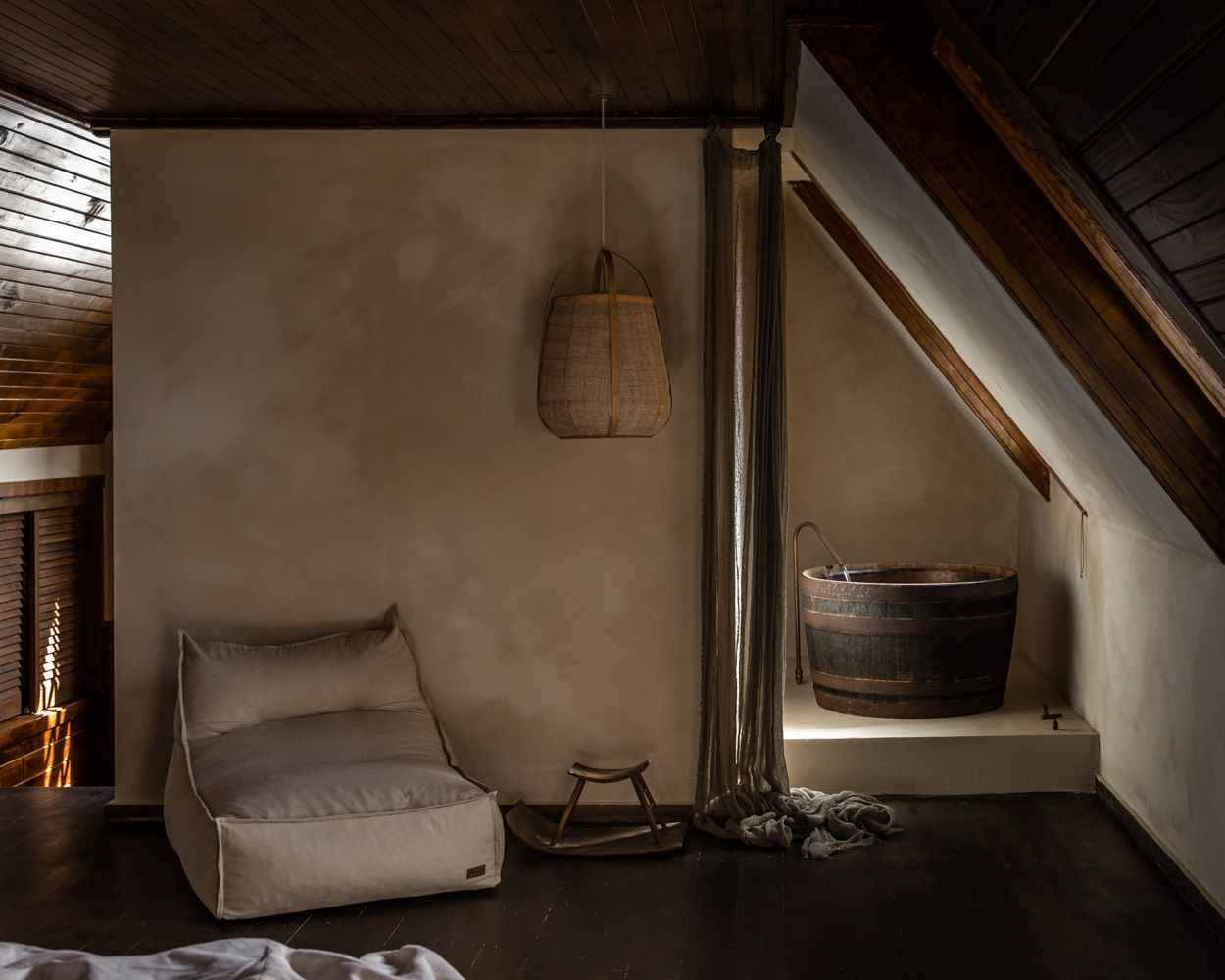 Apart from a few objects, we designed and made everything ourselves, from furniture to joinery, a concrete basin, upholstery and leather work, all created specifically for the space. Using natural and raw materials creates a deliberate connection with the surrounding landscape, combined with refined design principles creates a space of calm and tranquility.