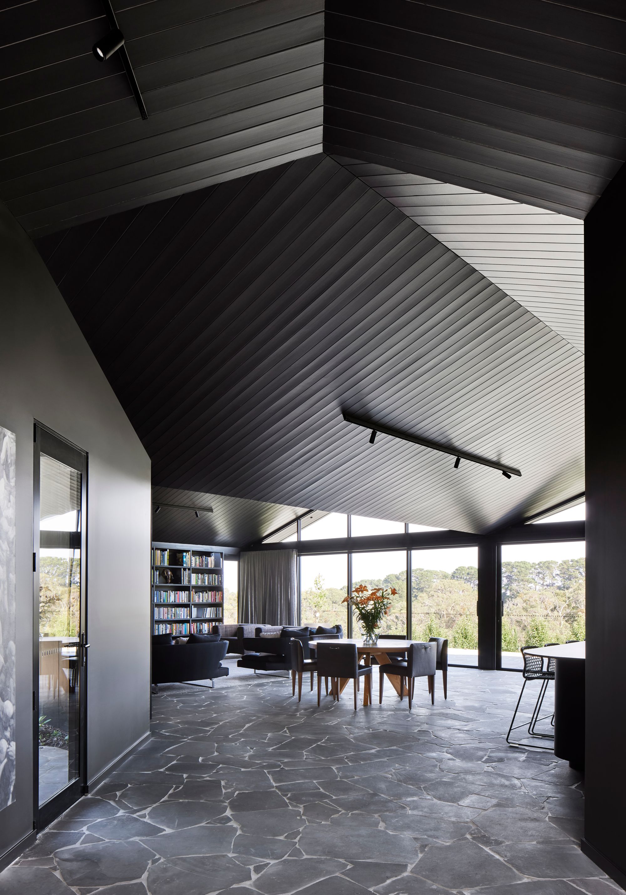A new entry and point of arrival was requested, one that not only welcomed the family home, but created a sense of flow through the house, drawing you through to the landscape view. It was