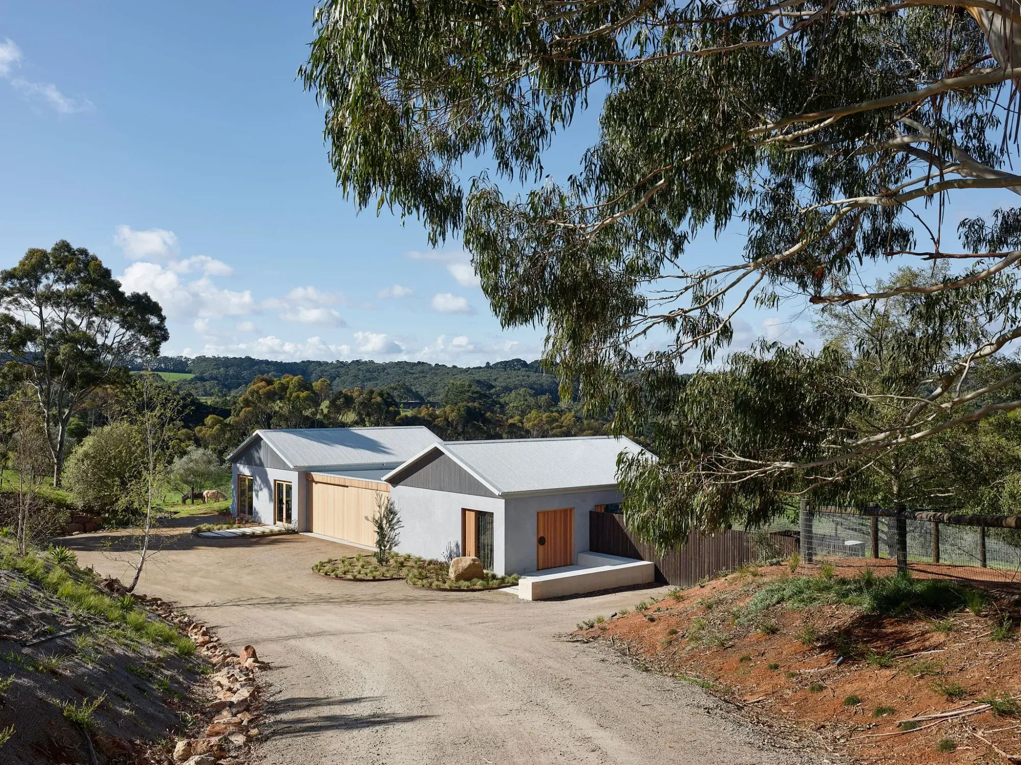 Offering breathtaking views of the surrounding hinterland and farmlands, this impressive project by Tom Robertson Architects, involved the reinvention of the cabins to create a single 50 sqm luxury suite and artist studio. The original twin cabin structures have been preserved, with one cabin transformed into the living and sleeping areas, while its counterpart, referred to as the 'artist workshop,' has been repurposed to foster creativity.