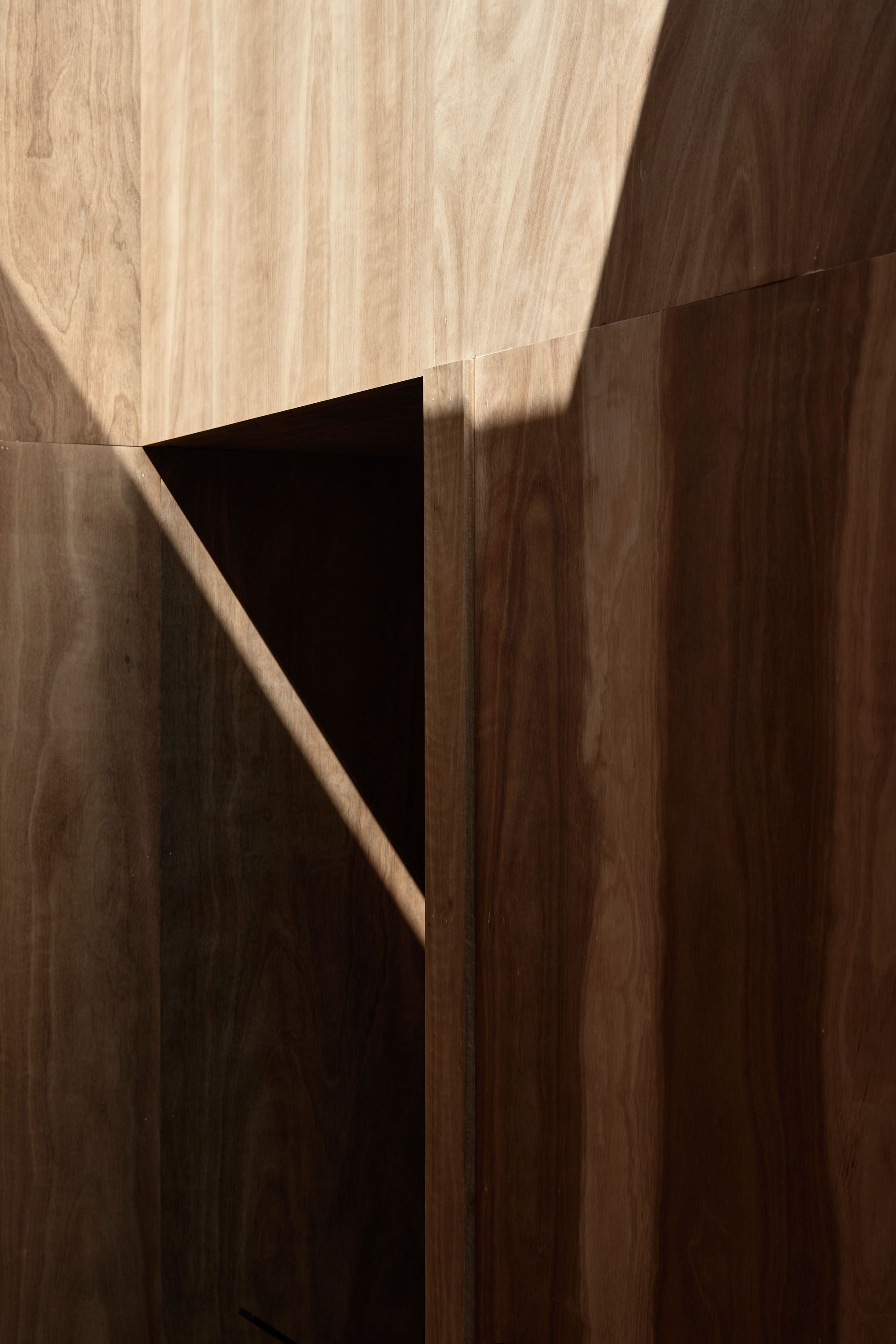 The choice of materials for the Carlton North Residence reflects a timeless and robust aesthetic. The exterior showcases a harmonious combination of charred timber cladding and recycled painted bricks, creating a visually captivating texture and depth. Additionally, metal screens were incorporated, ensuring both privacy and effective sun control. Inside, the material palette was kept minimal and selective, with the warm and cohesive presence of spotted gum, used for floorboards, wall panels, and joinery. This intentional selection creates an inviting and seamless flow throughout the home.