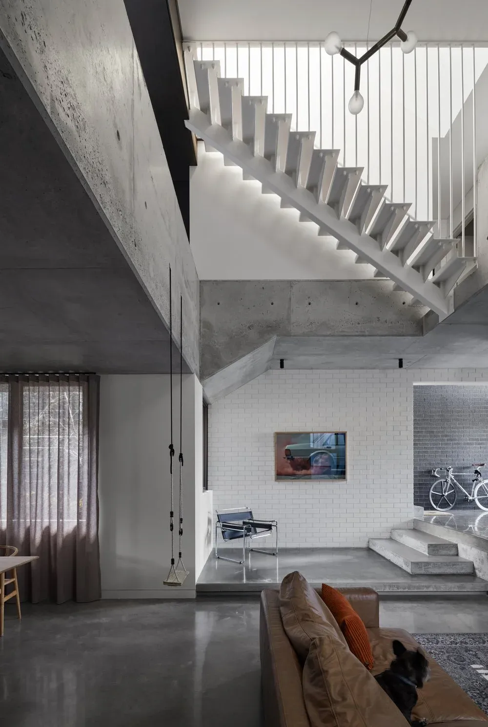 The West Australian sun is harsh and in coastal locations, this is exacerbated by the reflectivity of the water and white beach sand. Rather than exposing internal spaces to direct sunlight, Justin and Steve allow natural light to gently wash over surfaces by providing indirect sunlight to internal spaces. This is evident as you move through the home–where natural light washes over the face bricks and off-form concrete, or the steel treads of the suspended staircase.