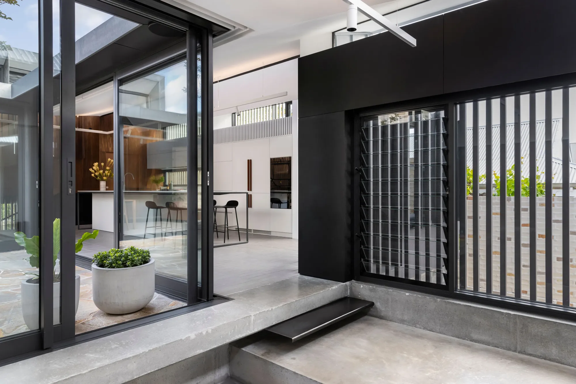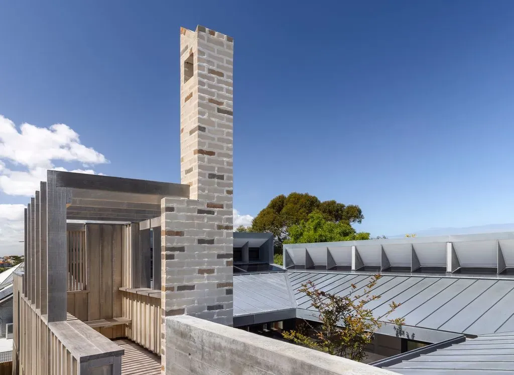 Other hardy materials used externally include fibre-cement cladding, high-performance modified wood and the standing seam zinc roof of the central courtyard. The courtyard roof serves as the fifth elevation when viewed from the crow’s nest district lookout above.