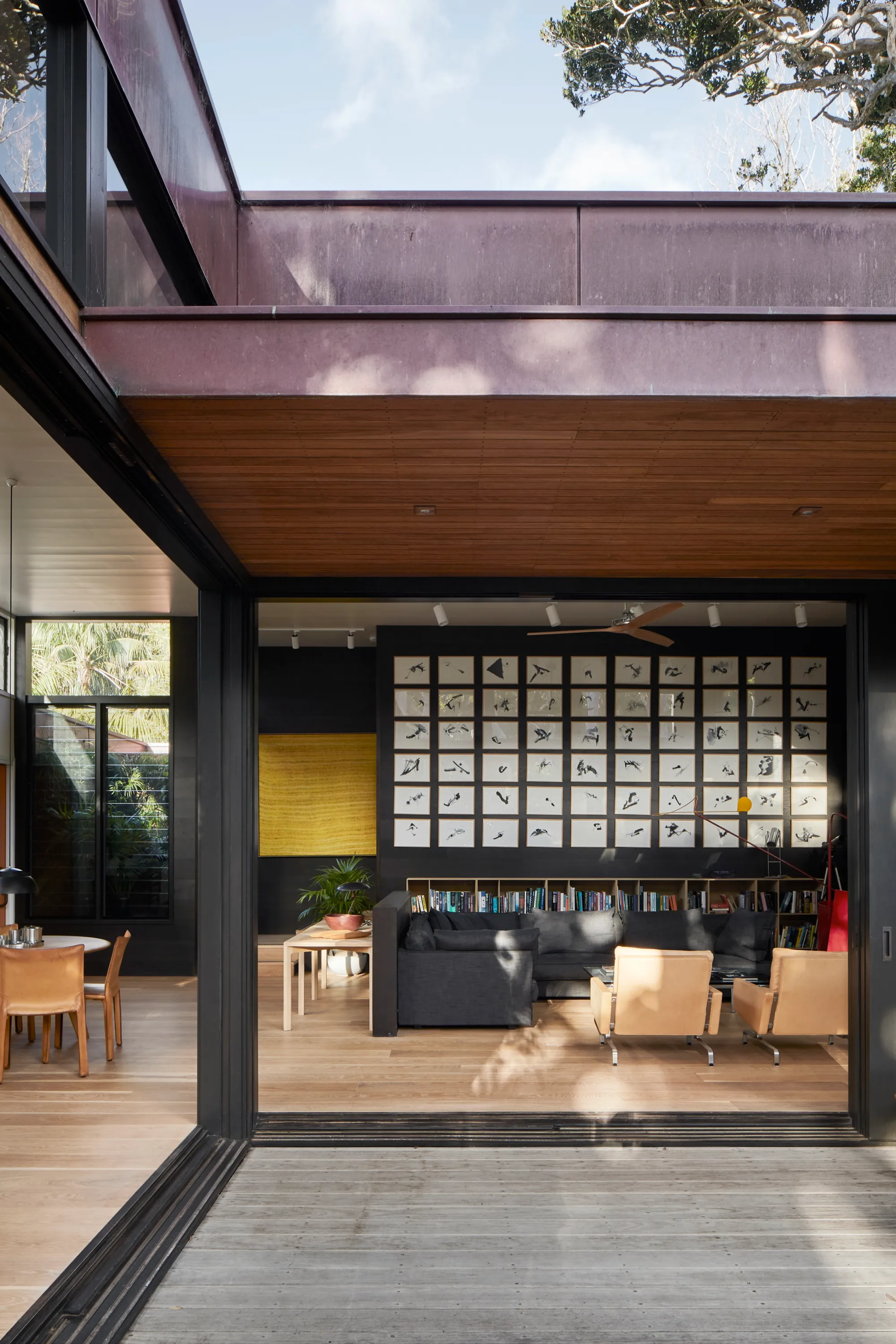 Materials had to be planned with shipping in mind, which necessitated close coordination between the architect, builders, and speciality fabricators. Blackbutt cladding, copper, and micaceous coated steel were among the low-maintenance, lightweight materials specifically chosen for their ability to age and develop character over time.