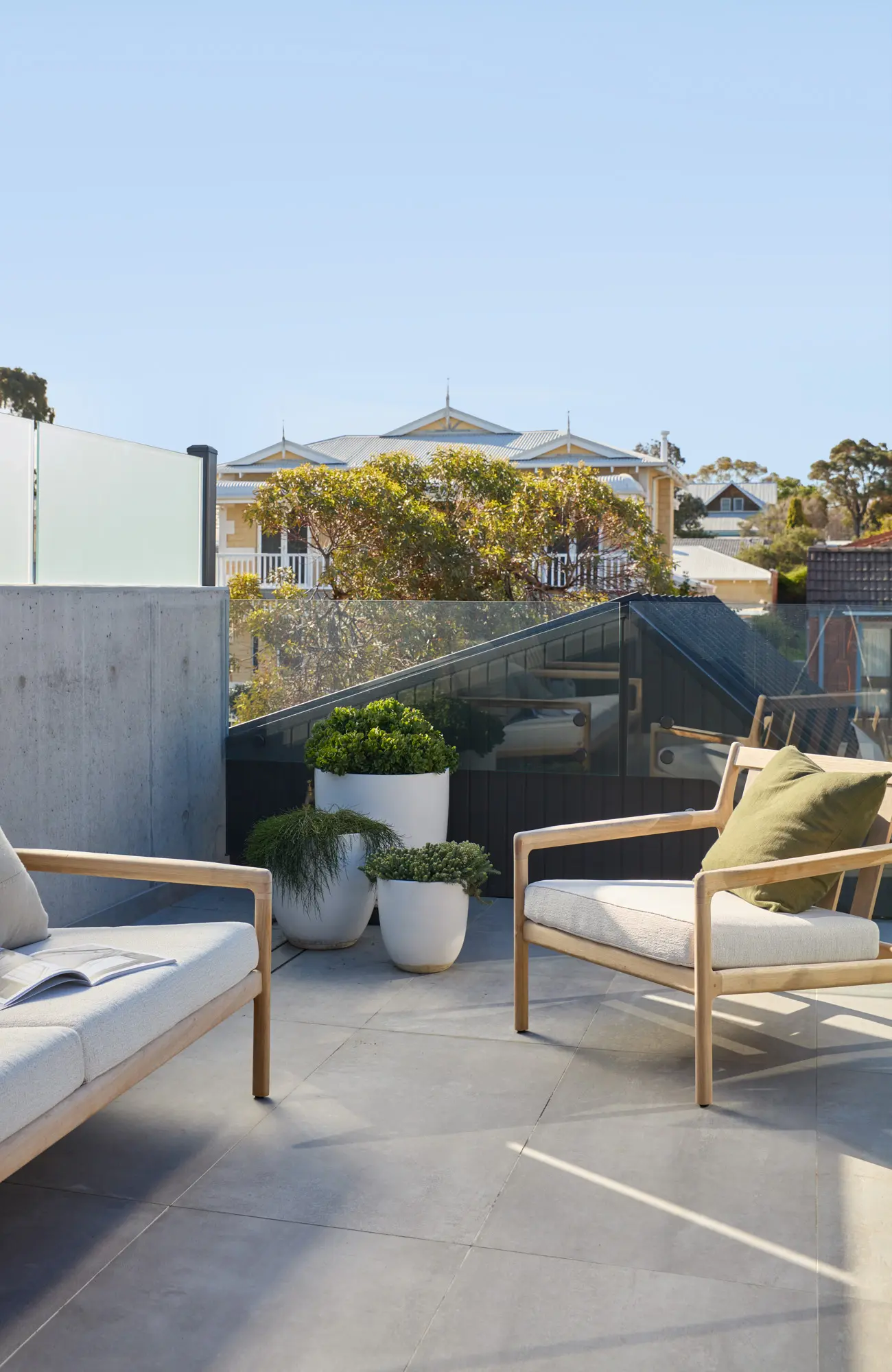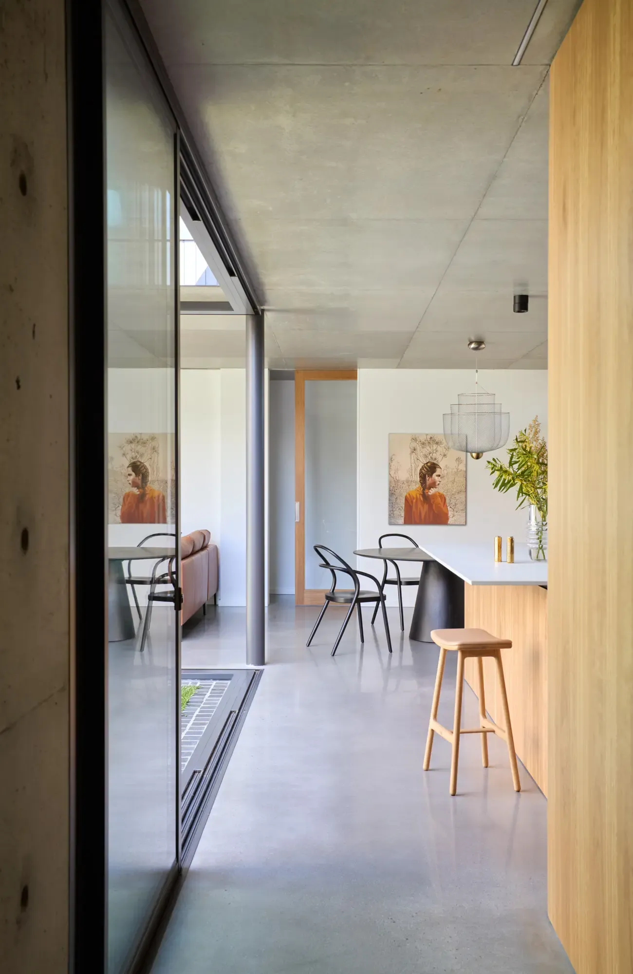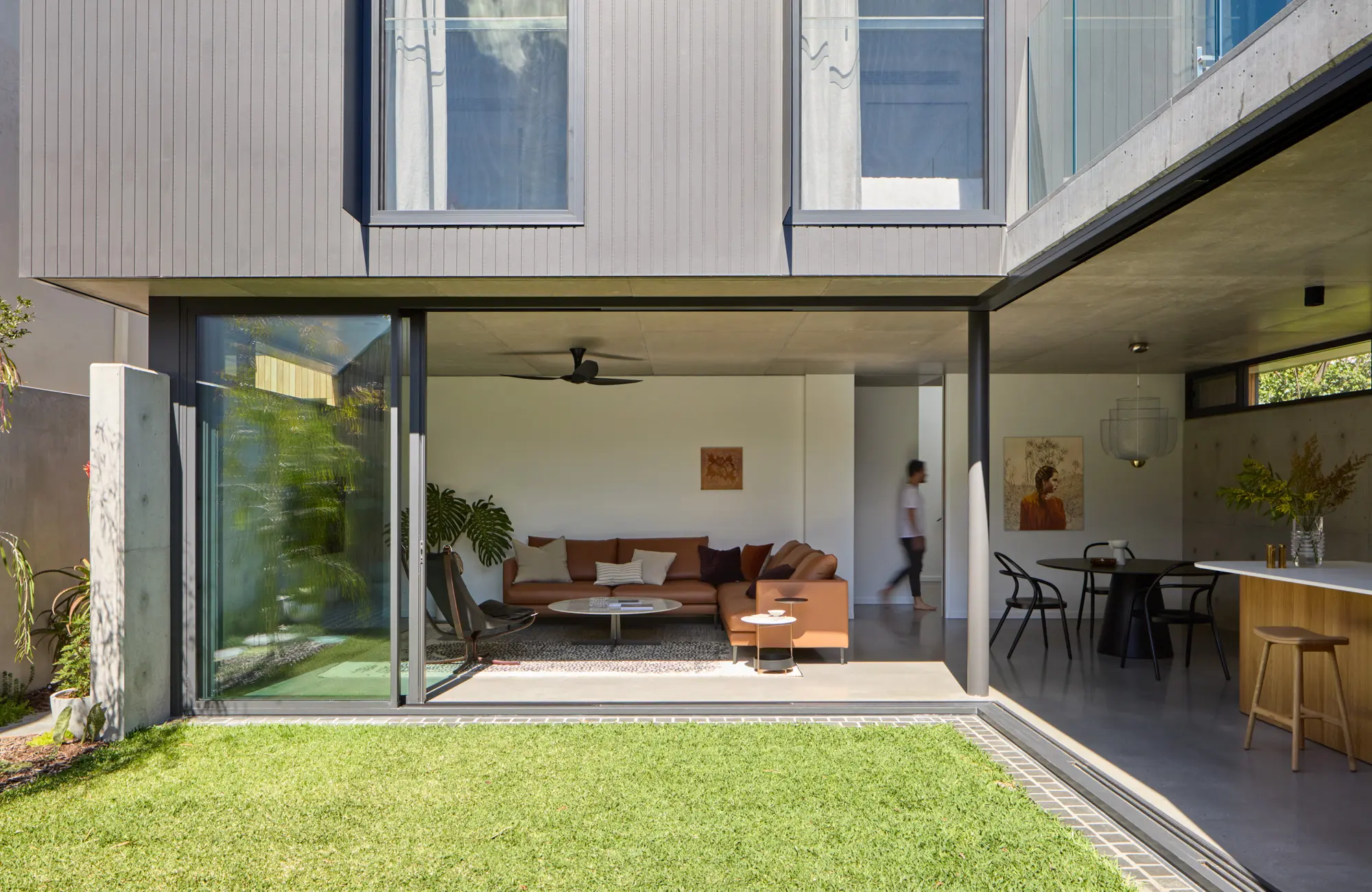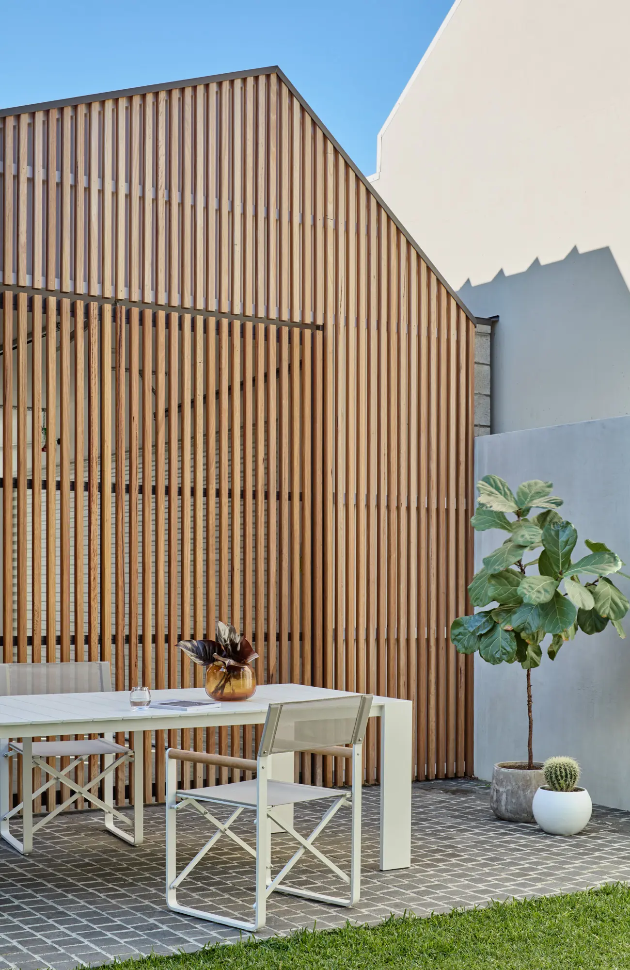 The design of Little Albion achieves an eloquent balance between privacy and a valued connection to the street, with timber battened doors expanding the courtyard into the carport and out to the street. This thoughtful design element allows for seamless integration with the neighbourhood, while maintaining privacy when desired.
