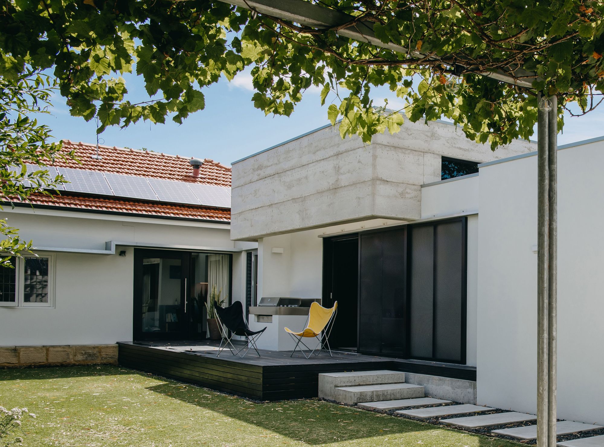 When the overseas garden suburb movement began influencing Perth’s fledgling suburbs of the early twentieth century, its anti-grid sentiment transformed suburban planning. Premised on ideas around health and cleanliness, it introduced a unique mix of park intermingled with curvilinear streets, deep home setbacks and tree-lined road verges fronting typically modest homes such as the original bungalow on this site in Daglish.